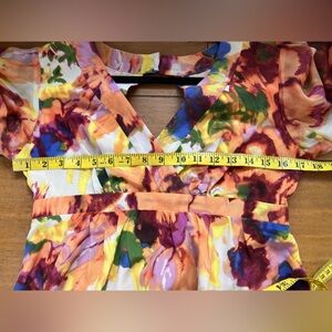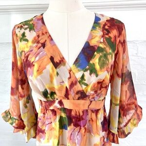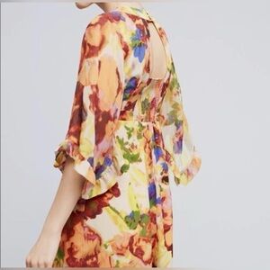 Anthropologie Maeve Deloria Floral Silk Dress Watercolor Kimono Sleeve Petite 4