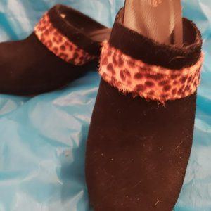 Crocs Shoes Womens Sarah Clogs Mules 203415 Black Suede Leopard Slip On 7 Wide