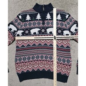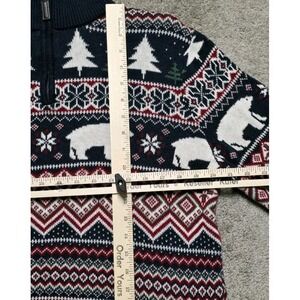 ASPEN Fair Isle Polar Bear Christmas Holiday 1/4 Zip Knit Sweater Size L