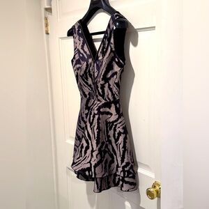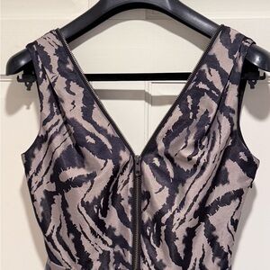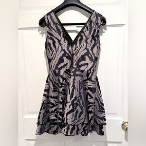 Bebe EUC Size XS Black & Gray Zebra Print Sleeveless Zippered Mini Dress (0601)