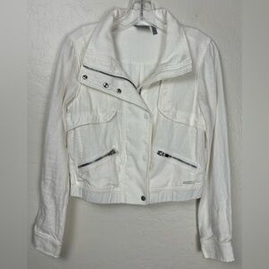 Athleta Linen High Neck Long Sleeve Lightweight Jacket White Size XS 0204