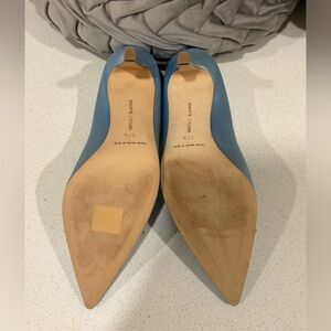 Manolo Blahnik Bluish Grey Satin Hangisi Pumps SZ 37.5