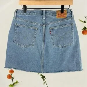 Levi's Blue Jean Mini Skirt Casual Raw Hem A-Line Size 30 Light / Medium Wash