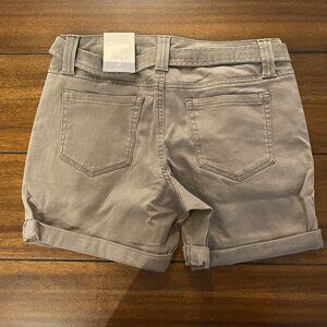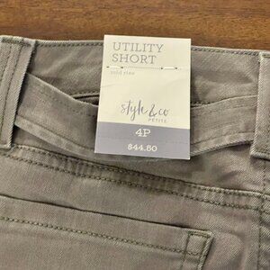 NWT Style & Company Stretch Pocketed Sash Tied Cuffs Short Olive Drab 4 Petite