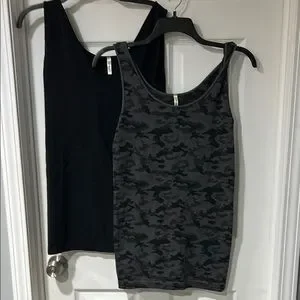 “Skinny Tees” Flattering Black and Gray Camouflage Tanks both for $10.