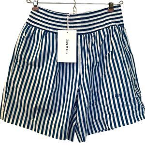 Smoked waist. Zippered pockets. Organic cotton. Super comfy! No flaws. Blue and white