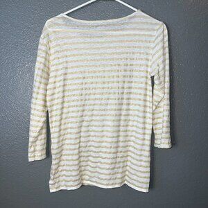 Majestic Paris for Neiman Marcus White & Gold Striped Long Sleeve Top - Medium