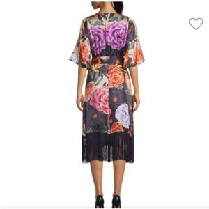 Kobi Halperin Wrap Dress XL Floral Silk-Blend Faux Kimono NWT Asian Fringe Boho