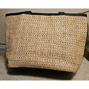 Bueno Women's Woven Straw Black Trim 3D Flower Accent Shoulder Tote Bag Purse