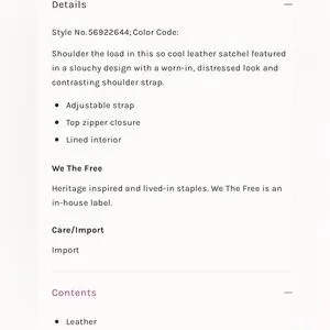 Beautifully distressed - has intentional distressing and some comes from use. *There are a few spots, and a small hole inside in the lining near the top as shown in pics.