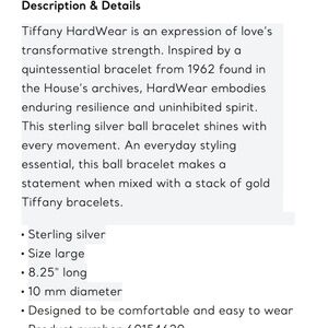 Tiffany & Co Bead Bracelet ("Ball Bracelet") 10 mm diameter, 8.25 length. Just got it professionally polished at Tiffany's here in NYC. Retails for 675 on their website. Open to questions/offers!