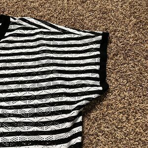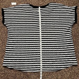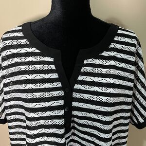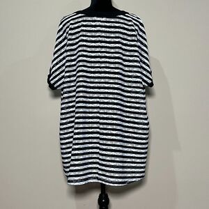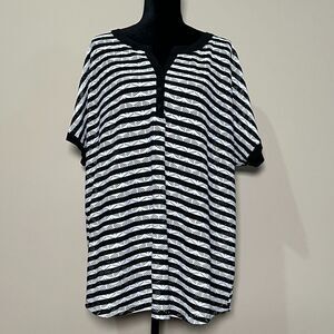CJ Banks Blue White Striped Pullover V Neck 3/4 Button Short Sleeve Size 3X