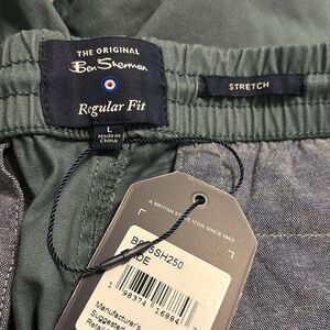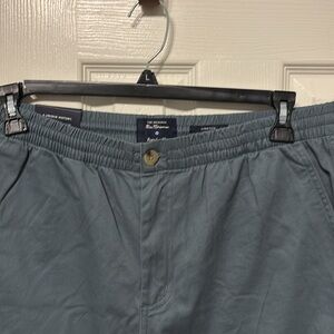 NWT Regular fit modern relaxed shorts. Elastic waist with drawstring. Button & zipper closure. 2 front pockets & 2 back pockets. Size L Color Jade (pictures look blue but they’re Jade green) 17” waist & 7” inseam Cotton/Spandex