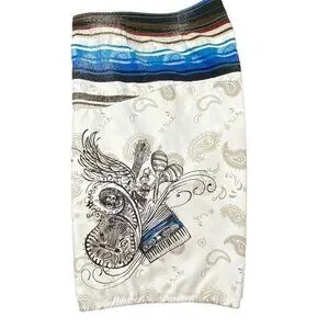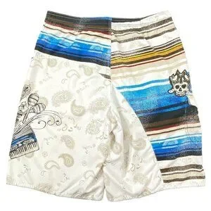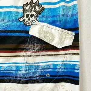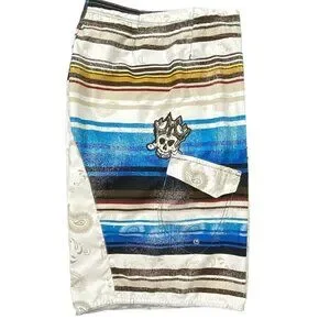Micros Board Shorts Swim Bathing Suit Mens size 33 White Blue Skull Paisley