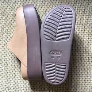 Step up your style with these chic brown platform clogs. Perfect for any casual outing.
