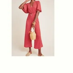 Anthropologie Margaret Belted Red and White Checkered Jumpsuit
