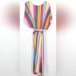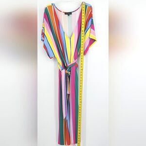 Eloquii Rainbow Wrap Around Dress Size 20 Multicolor Stripes Knee Length V Neck