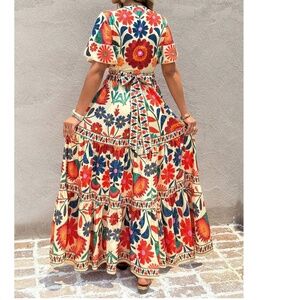 Plus Colorful Floral print Crop Top Maxi Skirt Set