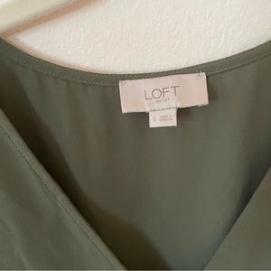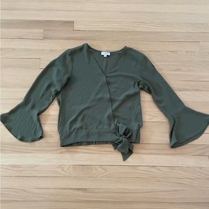 Loft Olive Green Long Sleeve Bell Sleeve Faux Wrap Shirt Small