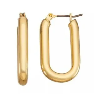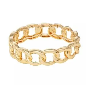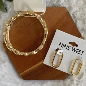 NINE WEST NWT Set! Gold Tone Curb Chain Stretch Bracelet + Long Hoop Earrings