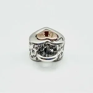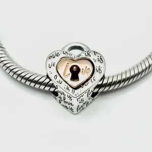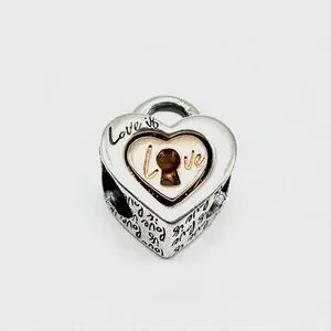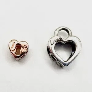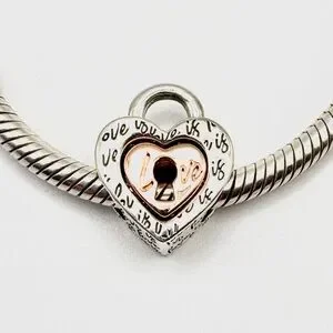 Pandora Two-tone Padlock Splittable Sterling Silver & Rose Gold Love Heart Charm
