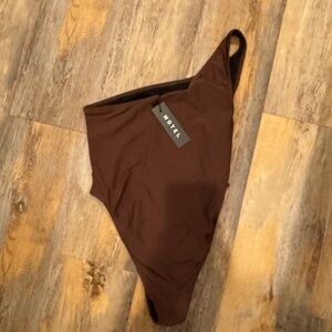 Elevate your swimwear collection with this chic brown one-shoulder swimsuit from Motel Rocks. Perfect for a stylish beach day.