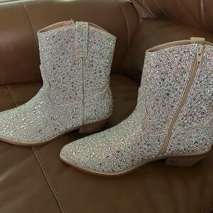 Step out in style with these dazzling rhinestone ankle boots. Perfect for adding a touch of sparkle to any outfit.