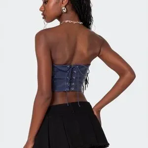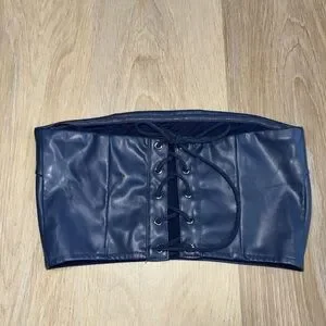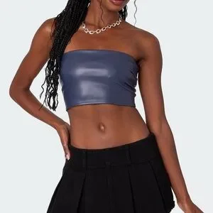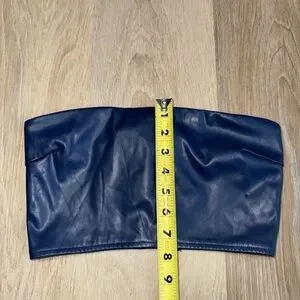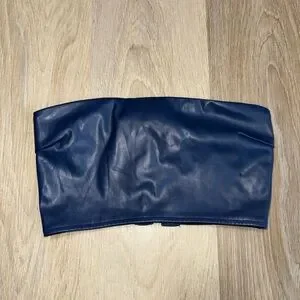 Edikted Blue Mazie Faux Leather Bandeau Top - Size Small
