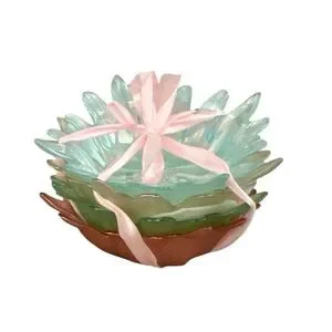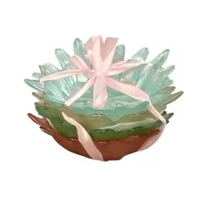 AKCAM Floral Shaped Iridescent Turkish Glass Bowls Assorted Colors (4). NEW!
