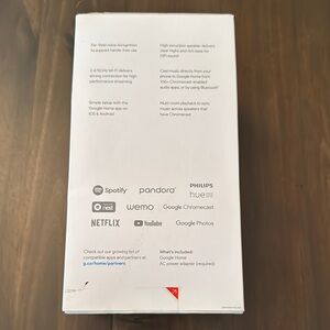 Google Home smart speaker with voice control. Features a sleek white and gray design.