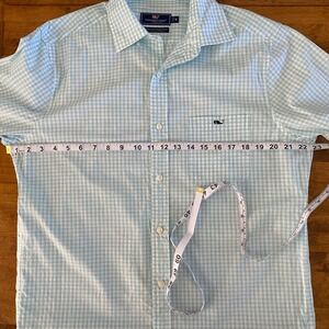 Keywords: Vineyard Vines, Gingham Shirt, Tucker Shirt, Classic Fit, Long Sleeve, Button Down Shirt, Men's Shirt, Casual Shirt, Preppy Style, Blue and White, Whale Logo, Medium, M