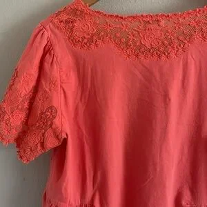 Sundance Coral Lace Trim Short Sleeve Top Size L