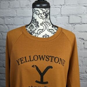 This is a women's pre-owned long sleeve stretch knit size xl popover sweatshirt unbranded like new condition with a Yellowstone logo on the front.