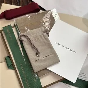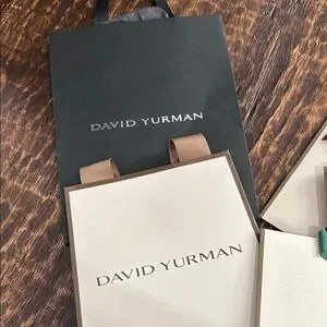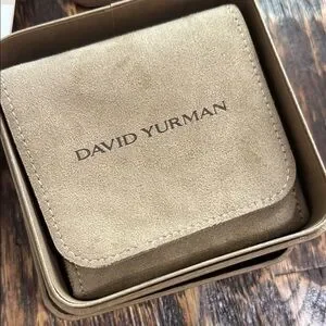 Sophisticated David Yurman packaging. Includes elegant bags, boxes, and pouches. Perfect for gifting.