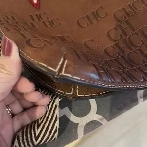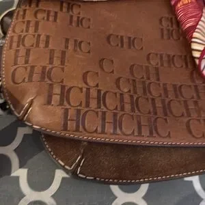 Pre-loved condition Carolina Herrera Castañuela Brown Logo Crossbody Reversible Bag. Comes with bag charm and original red CH dust bag. Loved this bag. It has the double pouch so it hold many things for a crossbody. Logo leather side and suede side. It shows signs of wear as shown in photos but it’s still a great bag! You can do some leather conditioning for a bag that will last forever.
