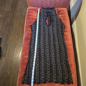 Key Info: NWT, Free People, Black, Gold, Stretch, Lace, Mini, Dress, Button Back, Mock Neck, Sz. S