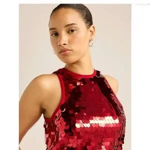 Red Sequin Sleeveless Top Scoop Women's Paillette Sequin Tank Top XS NWT