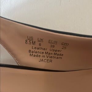 These Franco Sarto leather 8.5 black heels feature a sophisticated design with a sleek, polished finish. The elegant silhouette and minimalist style make them perfect for professional settings, offering a touch of class to any outfit.
