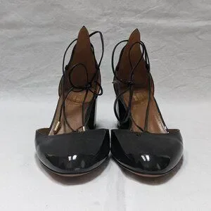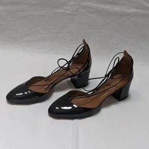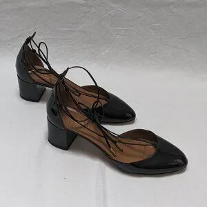 Elegant black patent leather heels. Features lace-up design. Chunky heel for comfort.