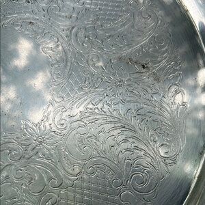 Beautifully engraved silver plated serving tray. Perfect for entertaining.