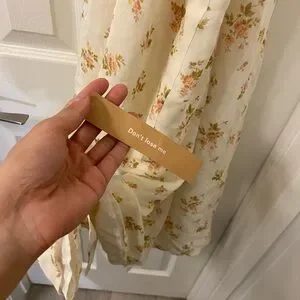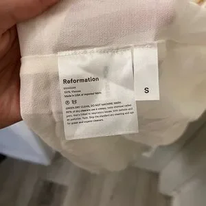 This elegant sundress by Reformation features a chic halter neckline and a stylish high-low hem, perfect for a wedding guest or cocktail occasion. The sleeveless design in cream and white exudes sophistication, while the slit adds a touch of allure. Ideal for resort wear, this dress combines comfort and style effortlessly.