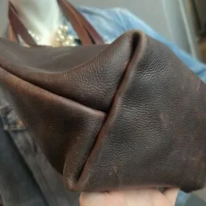 This color is like rich chocolate, and the leather is unbelievably soft yet structured super thick sturdy handles with copper hardware she is just gorgeous through and through!!! I think this is bison leather, not completely sureโฆI cannot believe how wonderful KMMโs quality is. I have been having lots of shoulder problems and so I cannot carry large totes anymore.. Iโm going to let this one go to a good home ๐ Iโm going to miss her ๐ค๐ค๐ค she has great pull-up. She will last you a lifetime.. thank you so much for looking
