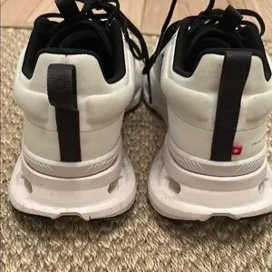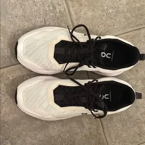 Experience comfort and style with On Running women’s shoes. Featuring a sleek white and black design, these shoes are perfect for any occasion. Worn twice to the gym. Please refer to photos for any marks and wear.