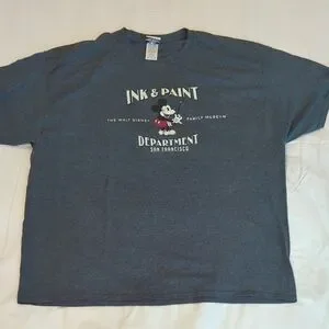 Gray tee featuring Mickey Mouse. Ink & Paint Department design. Comfortable short sleeves.