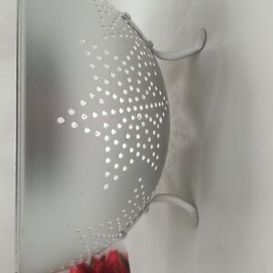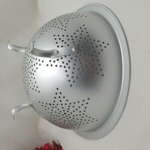 Vintage mid century deep 7 star thick aluminum metal colander strainer with 3 feet. 10" in diameter and 5" tall. In great condition for age with no dents.