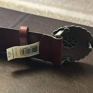 Stylish brown leather belt featuring a decorative silver concho with turquoise detail. Perfect for adding a touch of western flair to any outfit.
