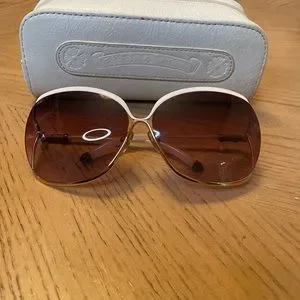 ❤️ Authentic Chrome Heart Sunglasses, White /Gold with Pearl White Arms in Excellent condition small chip in corner, not visible from the outside of glasse