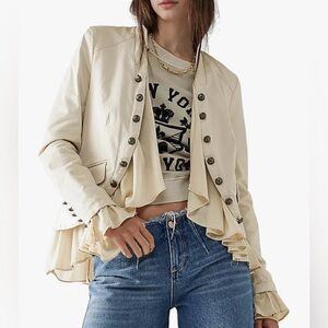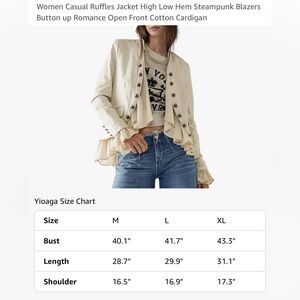 Amazon Brand jacket. Runs ample sized on me. Felt more like a S/M on me. Never worn other than for Photoshoot. Great condition. Size chart, fabric content, & care labels in pics. Most items in original plastic packaging. Packaging is the NWT TAG. No smoking home. For reference: I am 5’7, 122 lbs,size 2-4. 34B. Wearing size small.