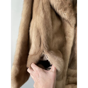 Absolutely beautiful and flawless vintage fur coat. The brand is Rices Nachmans which was a high end department store in Norfolk, Virginia that closed in the mid-1980s. The coat belonged to Connie Hindmarsh, who appeared on the old children’s tv show “Romper Room” for many years. It was purchased at an estate sale at her and/or her husband’s home.