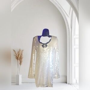 Stunning off white sequin dress with long sleeves. Perfect for parties and special occasions.